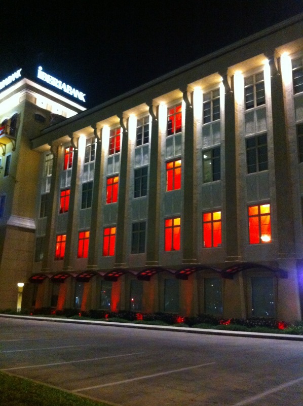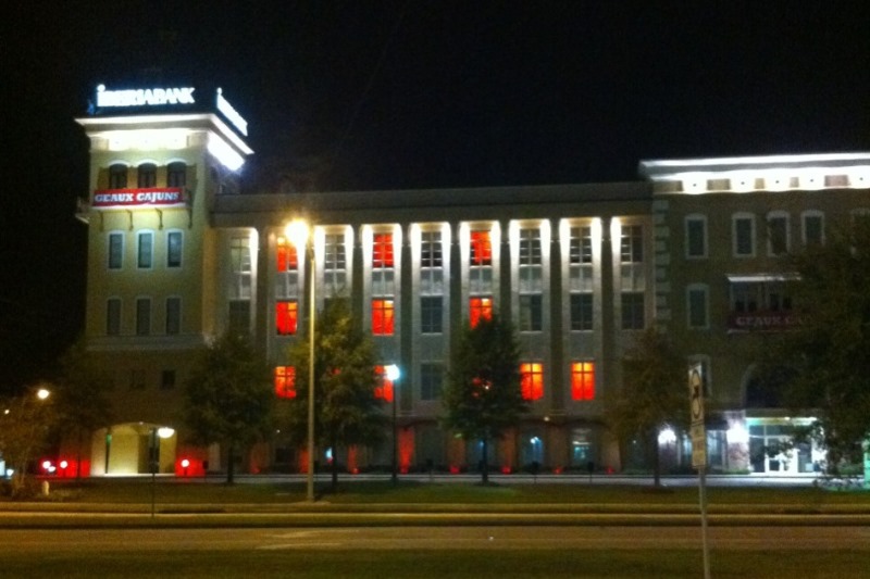 Red beans and rice were served as everyone celebrated UL Homecoming on the corner of Camellia and Kaliste Saloom, and if you pass at night, you will see "UL" lit up in the windows of the building showing our Ragin Cajun Spirit, both day and night. GEAUX CAJUNS!!